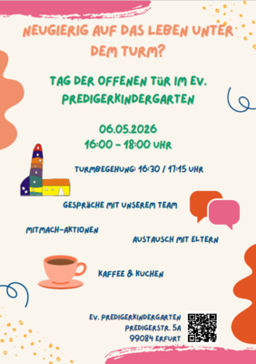 Es erwarten Sie Gespräche mit dem Team, tolle Mitmach-Aktionen, Austausch mit den aktuellen Eltern und natürlich Kaffee und Kuchen.